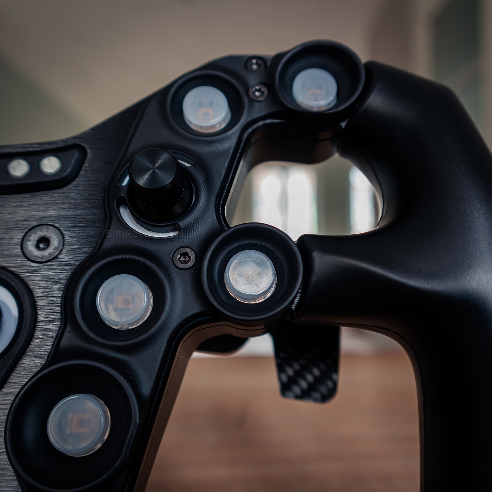 We monteren het Acelith Design GT-Phenom Stuurwiel op onze Simucube 2 Sport wheelbase met behulp van een Simucube Quick-Release. Aan de voorkant van het stuur bevinden zich gaten waarmee we de Quick-Release eenvoudig kunnen bevestigen. Met de meegeleverde M5 boutjes en moertjes is dit klusje binnen enkele minuten geklaard. Zo is de GT-Phenom direct klaar voor montage op de Simucube 2 Sport wheelbase.