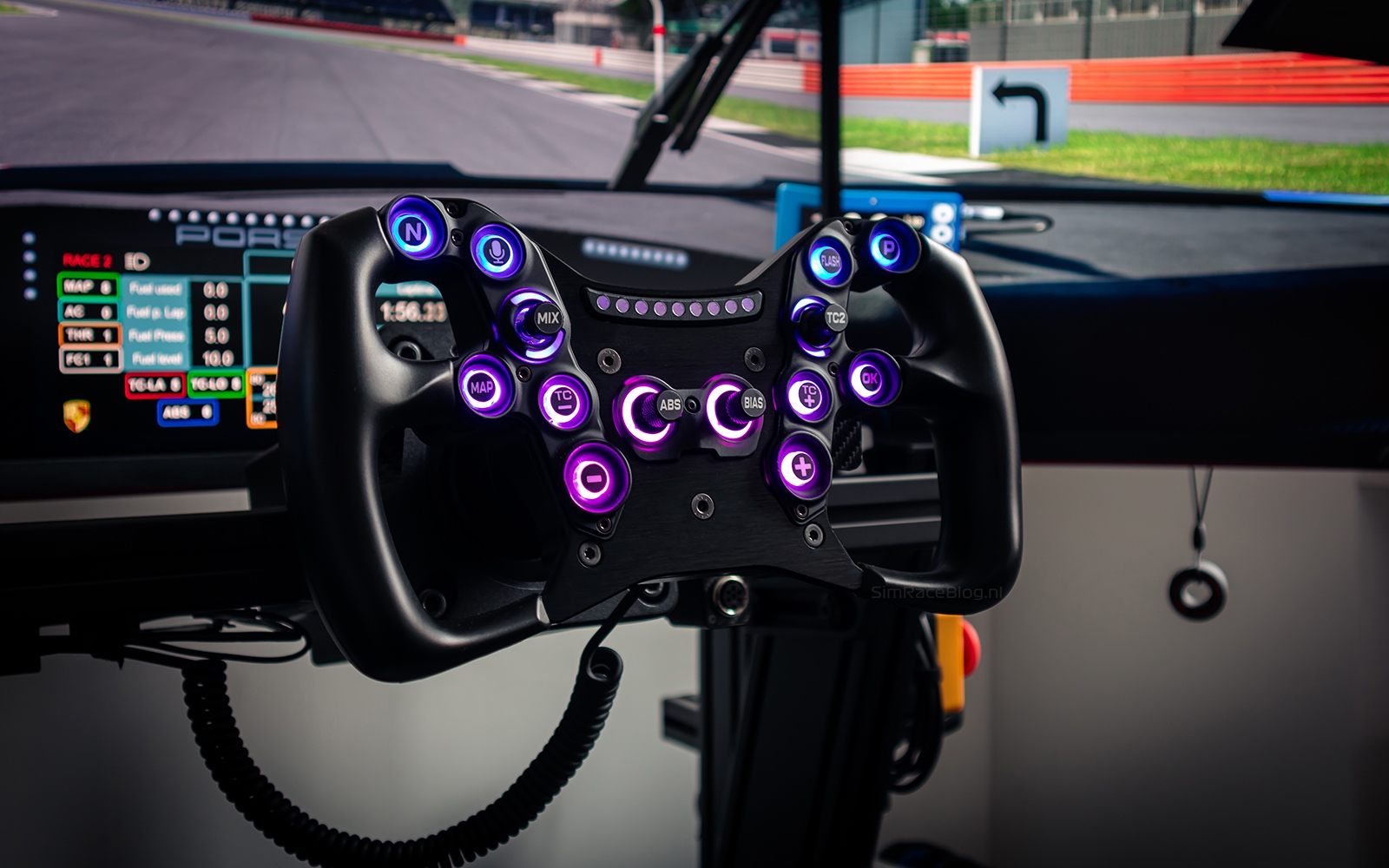 We zitten comfortabel in onze Sim-Lab P1X Pro simrig, met het Acelith Design GT-Phenom stuurwiel stevig gemonteerd op de Simucube 2 Sport wheelbase. Voor deze review duiken we in zowel Assetto Corsa als Assetto Corsa Competizione en testen we verschillende open-wheel- en GT3-auto’s. Na het opstarten van de games is het instellen van de knoppen en encoders een fluitje van een cent. Zodra alles is ingesteld, zijn we klaar om te racen!