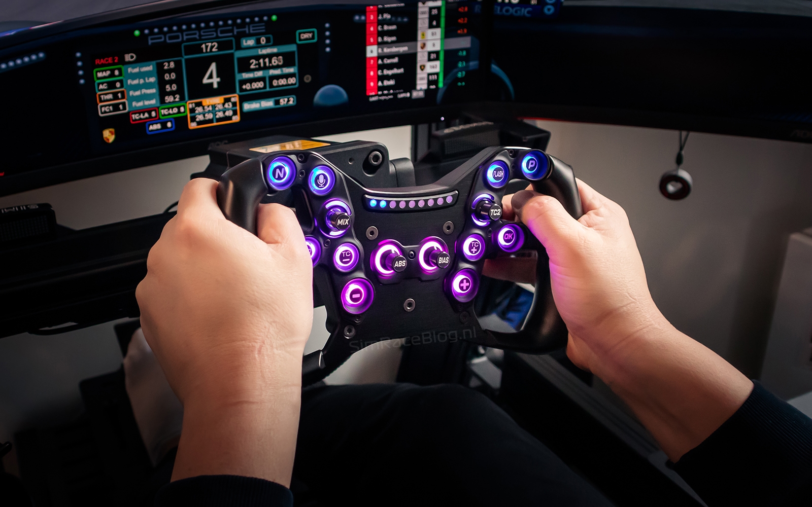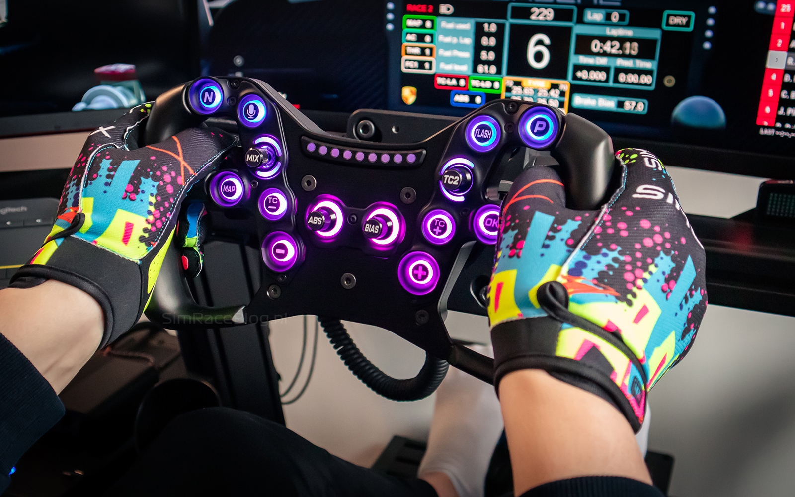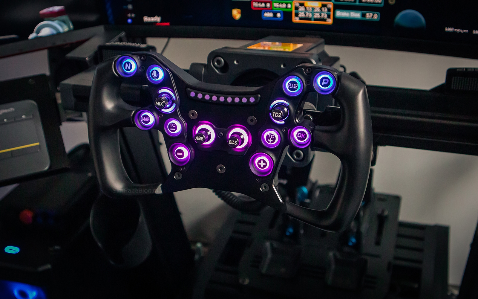 De bedieningselementen aan de voorzijde zijn slim geplaatst en eenvoudig te bedienen tijdens het racen. De drukknoppen, encoders en de multi-directionele joystick bieden voldoende feedback, al hadden ze iets steviger mogen aanvoelen. Alle bedieningselementen zijn voorzien van telemetriegestuurde RGB LEDs, wat de immersie tijdens het rijden verder vergroot.