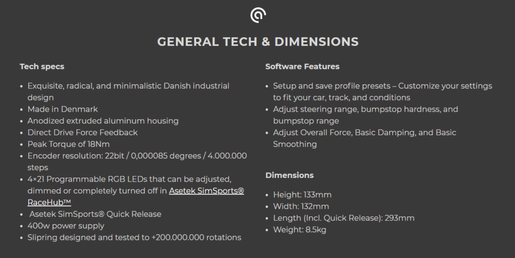 Asetek La Prima (12Nm), Forte (18Nm) and Invicta (27Nm) Direct Drive Wheelbases