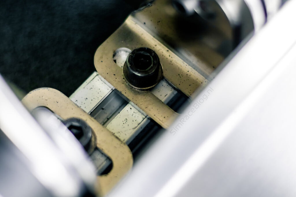 We have mounted the 3Drap Ngasa pedal set on both our FormulaSimRigs Avanzata rig in combination with the Fanatec CSL DD 8Nm, and on the Trak Racer TR8 Pro in combination with the Cammus GT1 DD Bundle. The Avanzata’s pedal deck consists of aluminum profiles which should make mounting very easy by means of T-slot nuts in the pedal deck and bolts from above through the mounting points of the pedals. As mentioned, however, we did not receive any mounting materials, so we were left with T-slot nuts already present in our pedal deck and bolts from another pedal set. Mounting the rear of the pedals is easy; align the mounting brackets with the T-slot nut, insert the bolt and tighten it. However, the front is quite a bit trickier. To access the front mounting brackets, we first remove the heel plate to expose them. Mounting a bolt from above in this mounting bracket, however, appears to be virtually impossible because the mounting bracket for the heel plate is also directly above it. It is possible to screw the bolt in by hand, but no Allen key fits in between, so proper tightening is not really possible. We have therefore not fully tightened these bolts to prevent us from not being able to loosen them later on. Mounting on the Trak Racer TR8 Pro is easy thanks to the 30×30 profiles of the 3Drap Ngasa set. Because they are adjustable in depth, aligning them with the universal Trak Racer wheel deck and tightening them at the bottom is a breeze. Here too, though, we had to use our own bolts.