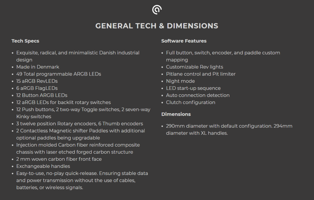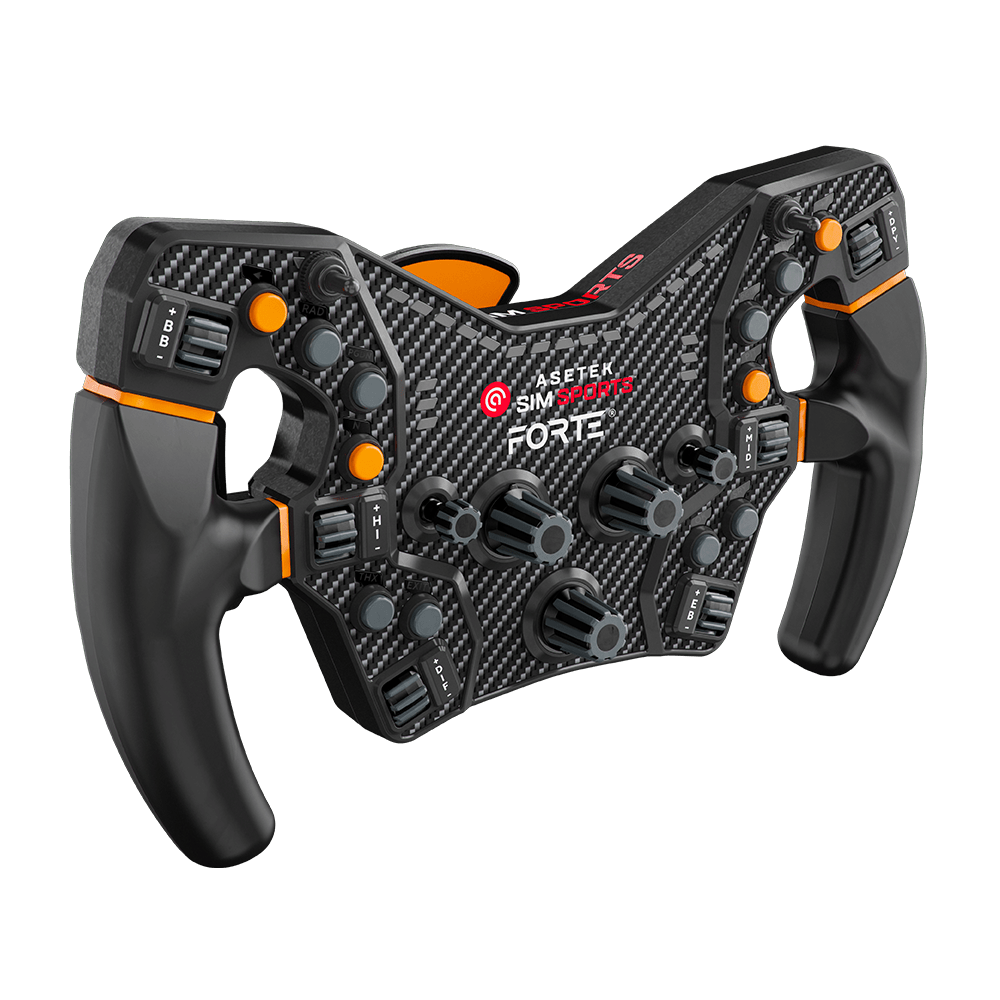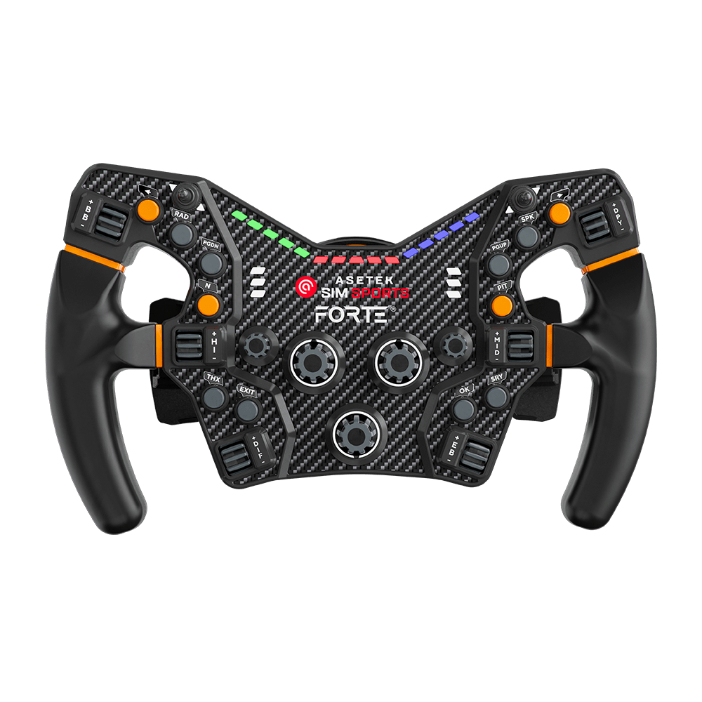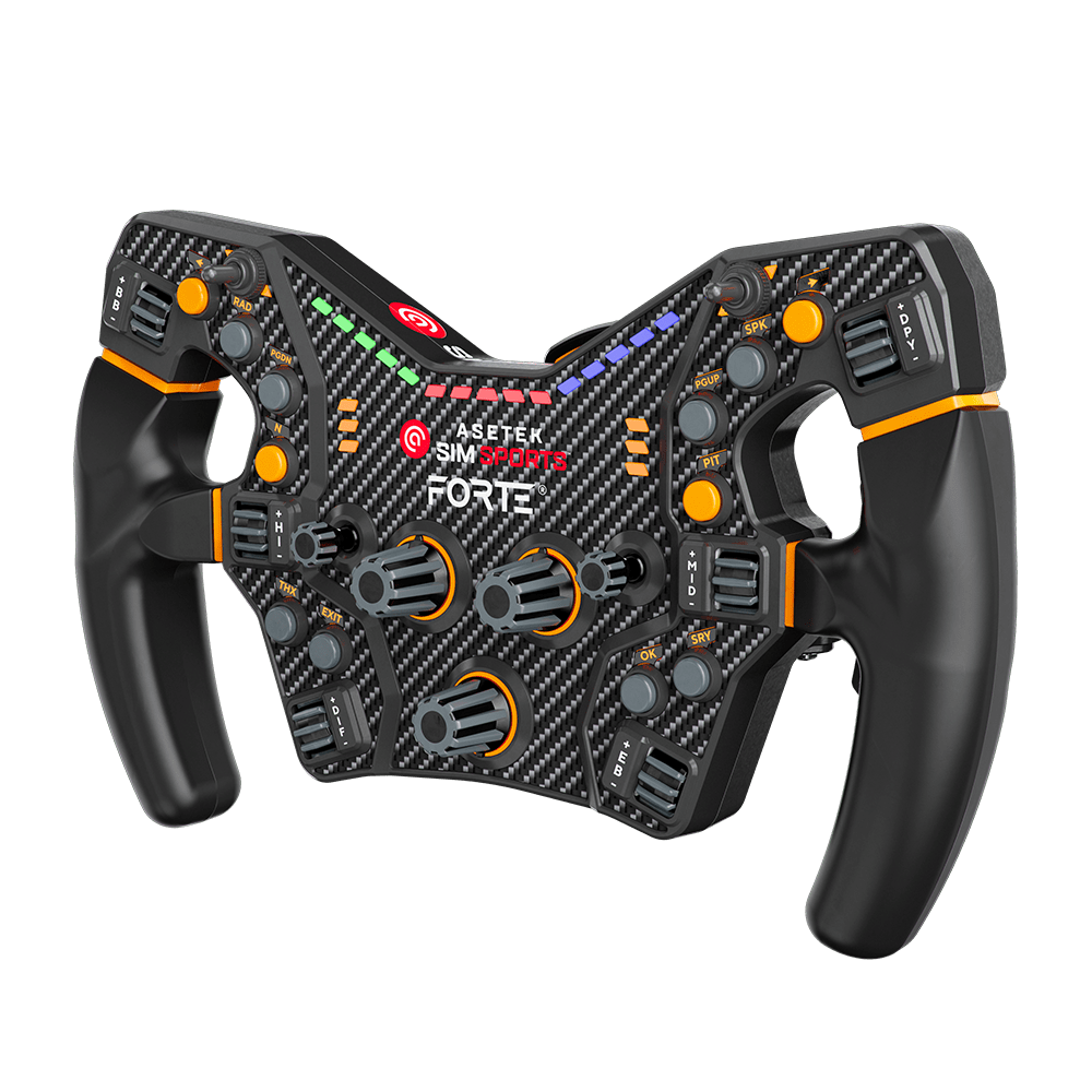 Inspired by real-life formula cars, the Asetek Simsports® Forte® Formula Steering Wheel has been thoroughly designed by racers and sim racers alike to live up to the feeling of real-life racing, and at the same time adopting sim racing feedback. With this and other feedback in mind, we started from the ground up and a clean sheet of paper on a mission to create the best possible sim racing formula wheel, but like our other products, without breaking the bank. We are pleased to say that we achieved just that – please meet the Forte® Formula steering wheel! The Asetek Forte Formula Steering Wheel is available for pre-order starting today.