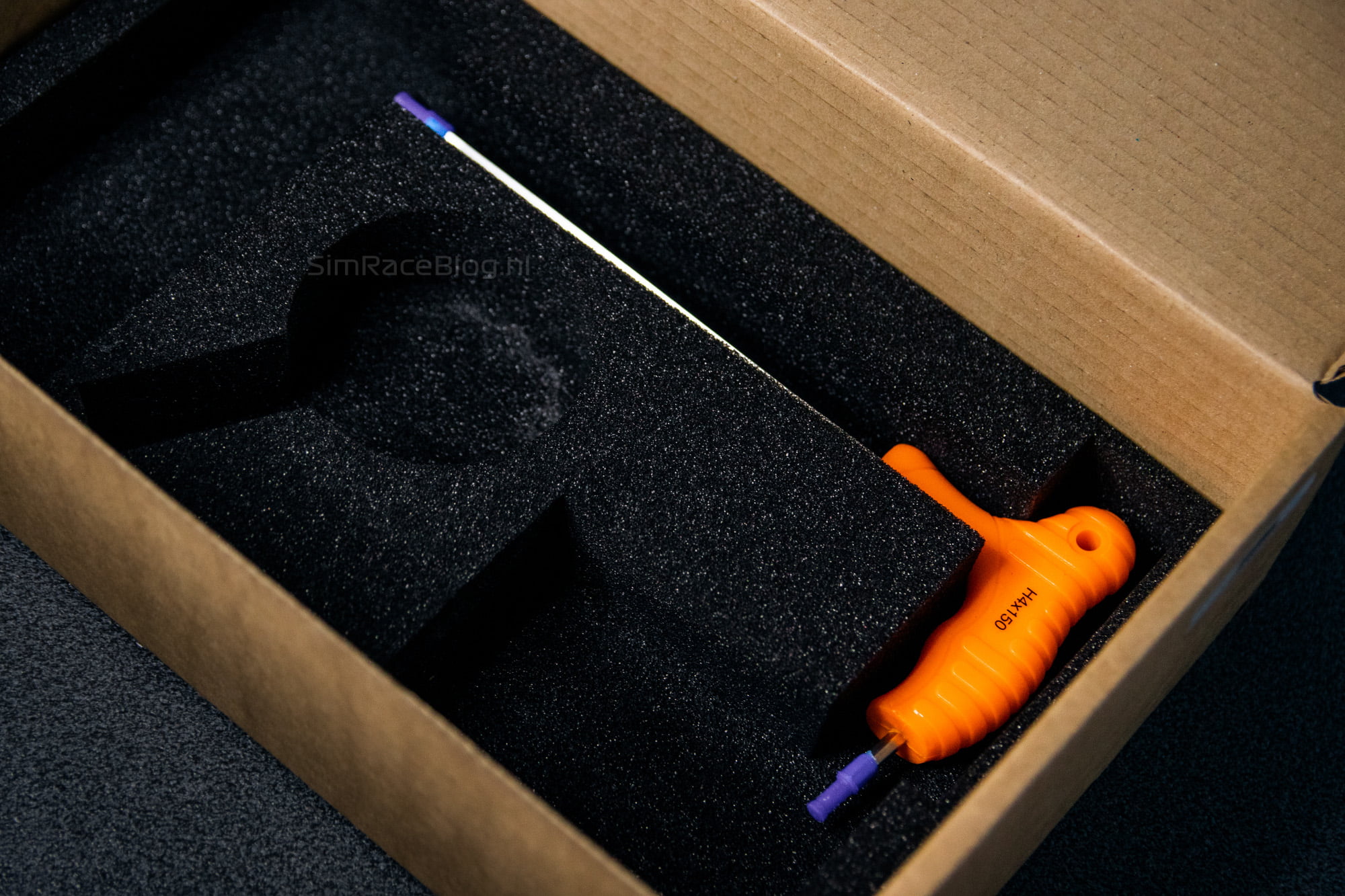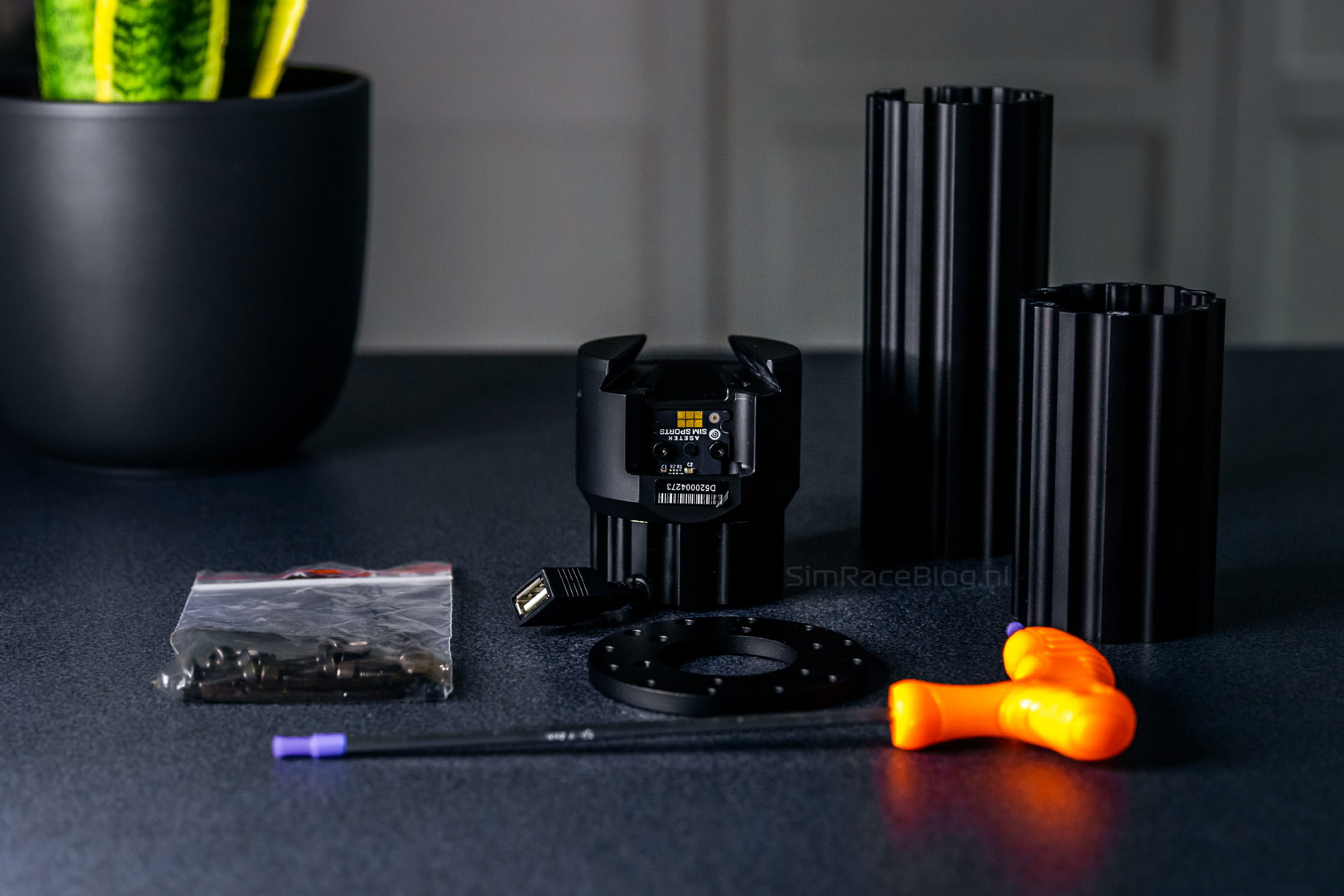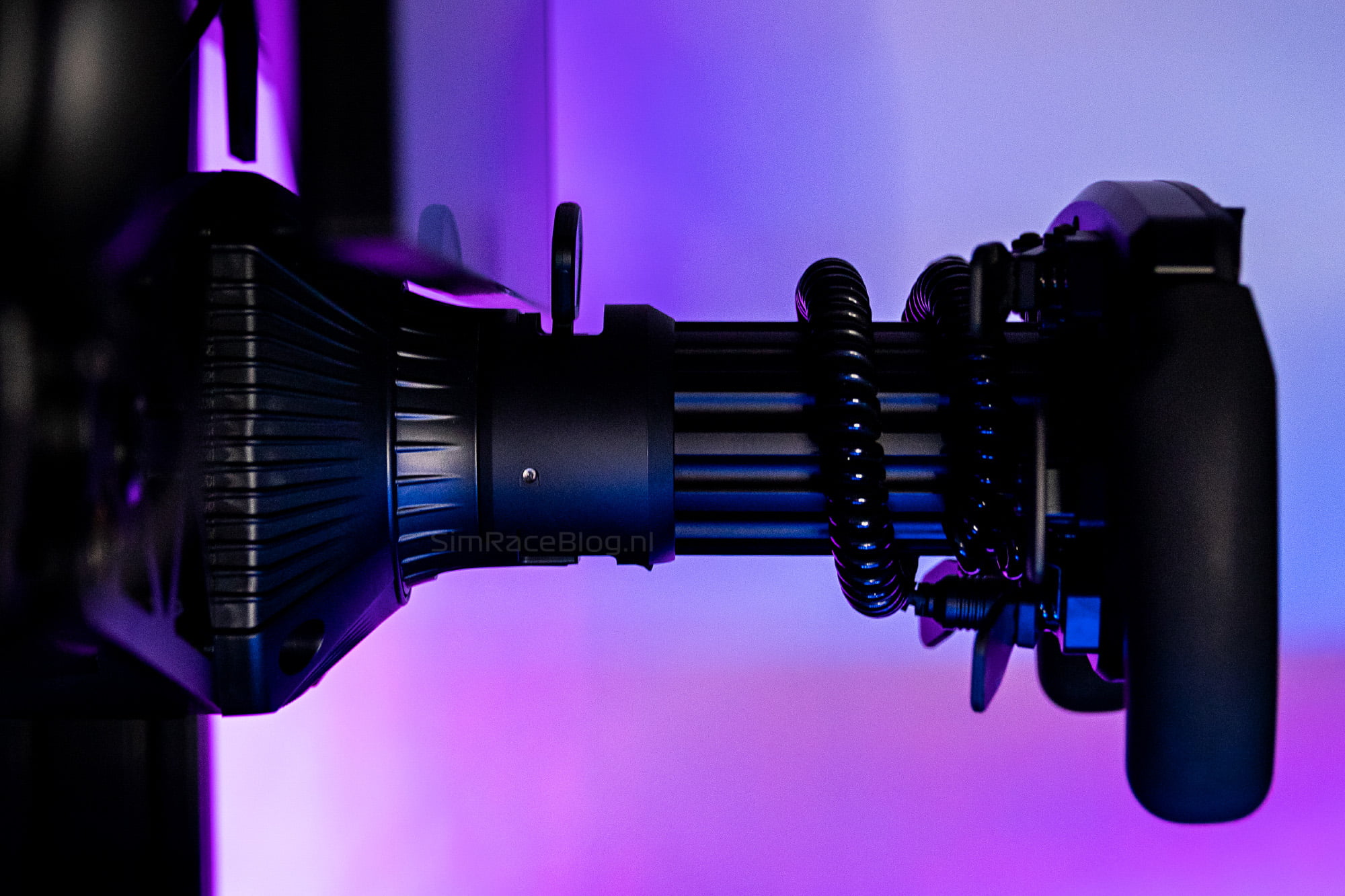 Simultaneously, using the extender exposes two downsides to it. Firstly, they have a considerable diameter, meaning that when a monitor is placed between the wheelbase and the steering wheel, it can’t be lowered too much, which is sometimes desired to achieve a nice field of view (FOV). The second drawback is that, as mentioned earlier, the extender is mounted on the steering wheel side of the Invicta Quick Release. This means that now, with the Quick Release Adapter and 150mm extender mounted and the rest of our sim rig adjusted accordingly, we can no longer use the original Forte steering wheel. We have the wheelbase mounted further away from us to compensate for the length of the extender on our steering wheel. This means that if we were to mount the original Asetek Forte steering wheel, of which the Quick Release Adapter cannot be removed or modified, our arms would have to stretch too far, resulting in an uncomfortable driving experience. This puts Asetek’s own steering wheels potentially out of play when setting up your sim rig for use with an extender.