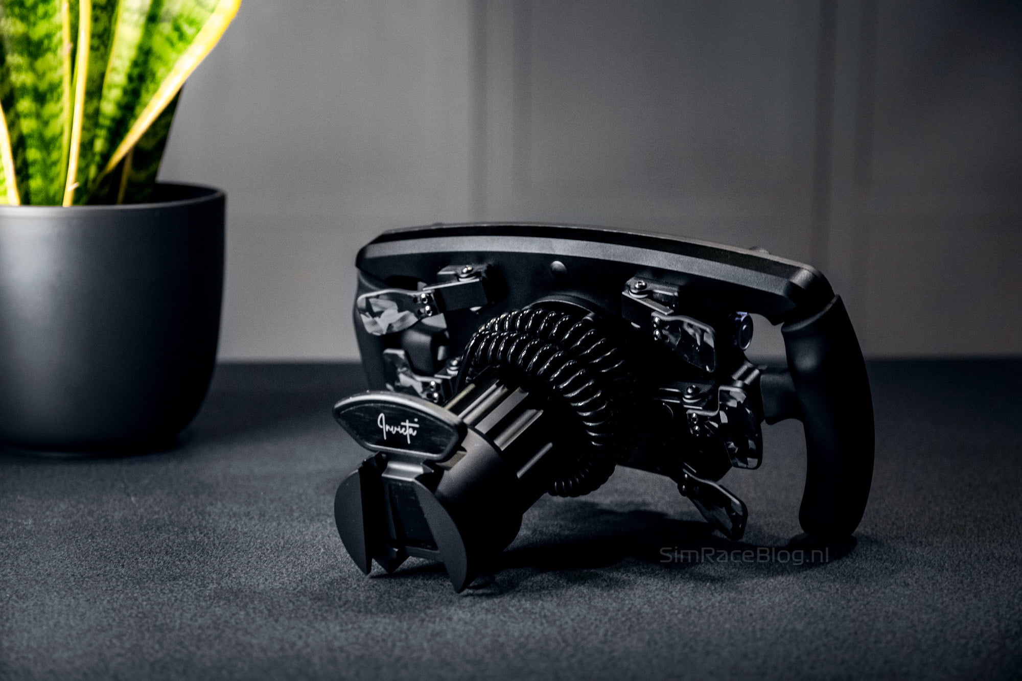 Mounting the Quick Release Adapter to our Leoxz XF1 Pro steering wheel is a breeze. We choose to conceal a part of the cable inside the Quick Release Adapter and wrap the remaining cable around it. With everything in place, the assembly feels incredibly sturdy. It’s worth noting that the steering wheel immediately feels somewhat larger due to the extended Quick Release Adapter, which protrudes quite a bit to the rear. With the Invicta Quick Release Adapter securely mounted, it’s time to hit the virtual track!