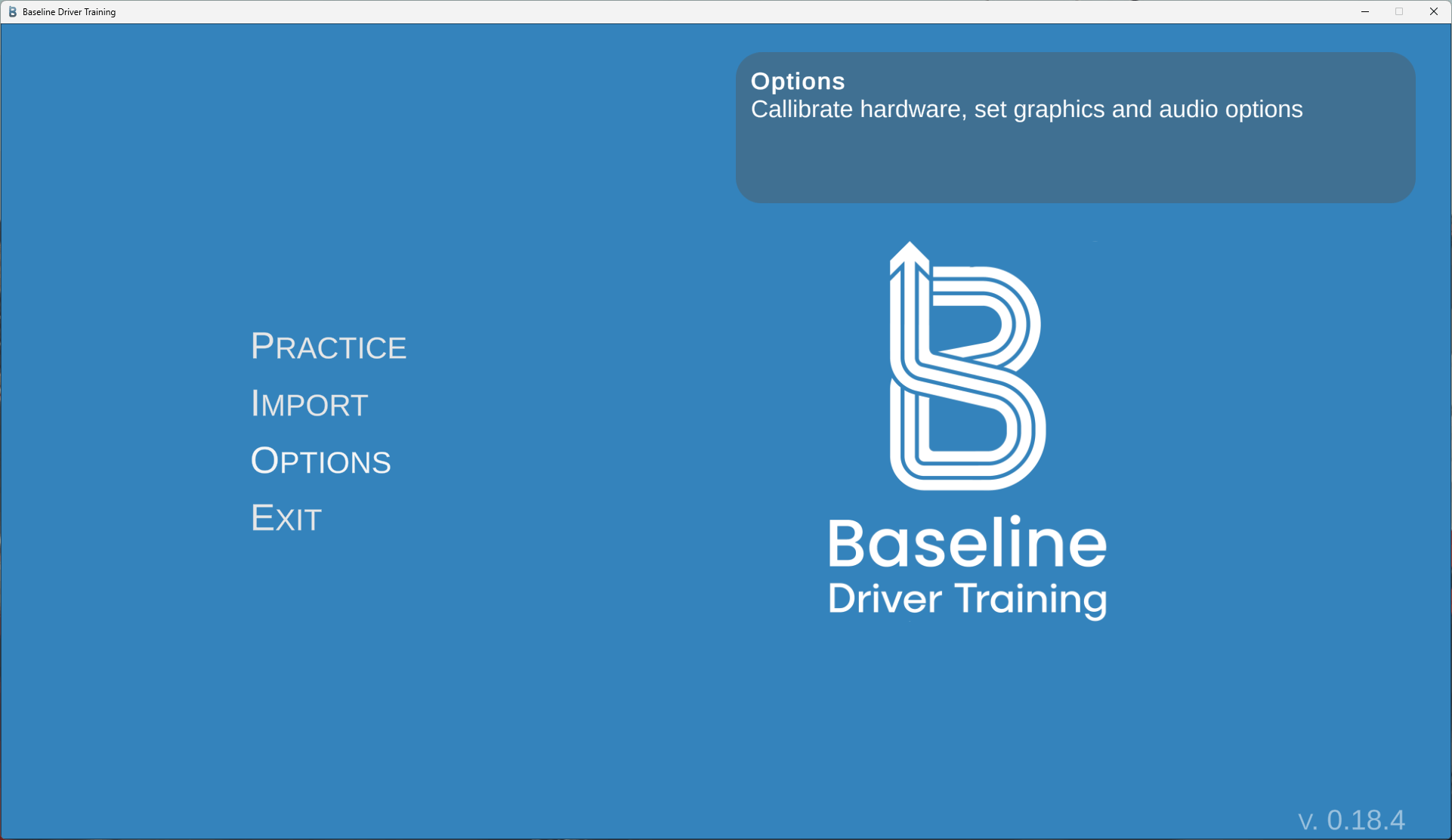 After downloading the Baseline Driver Training software, installation is straightforward. Within moments, the software is up and running on our computer. While it’s available in multiple languages, we opted for the English version. Upon launching the program, we accepted the “Terms of Service,” and then we were ready to begin. Our first step was to navigate to the ‘Options’ menu to check our input settings. In our case, all pedal settings were correctly recognized by the Baseline Driver Training software right away. If this isn’t the case for you, you can calibrate them through the menu. We left the rest of the options unchanged.