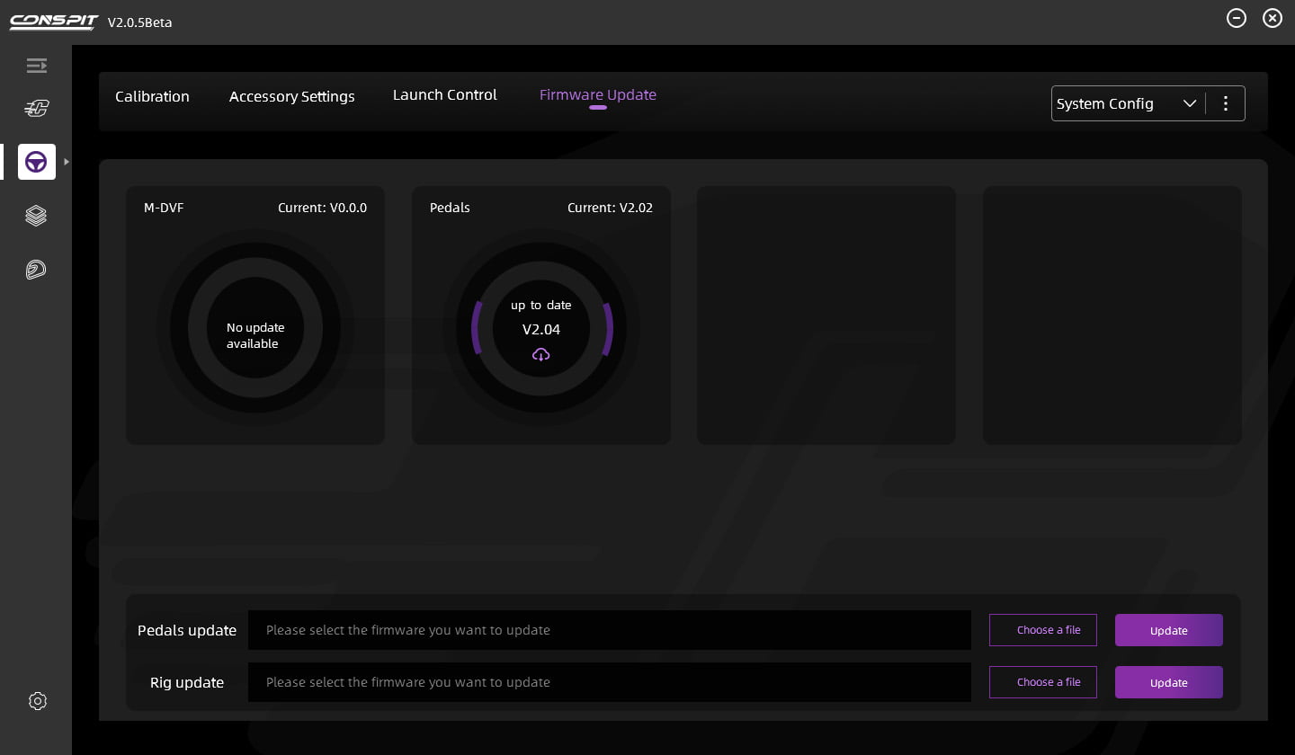 Additionally, we have the ‘Firmware Update’ tab, which is self-explanatory. Through this screen, we first install the new firmware for the pedals before diving into the full experience. Finally, the main screen also shows available plugins, with two currently available at the time of writing: live telemetry data from the pedals and a 0-100km/h widget.