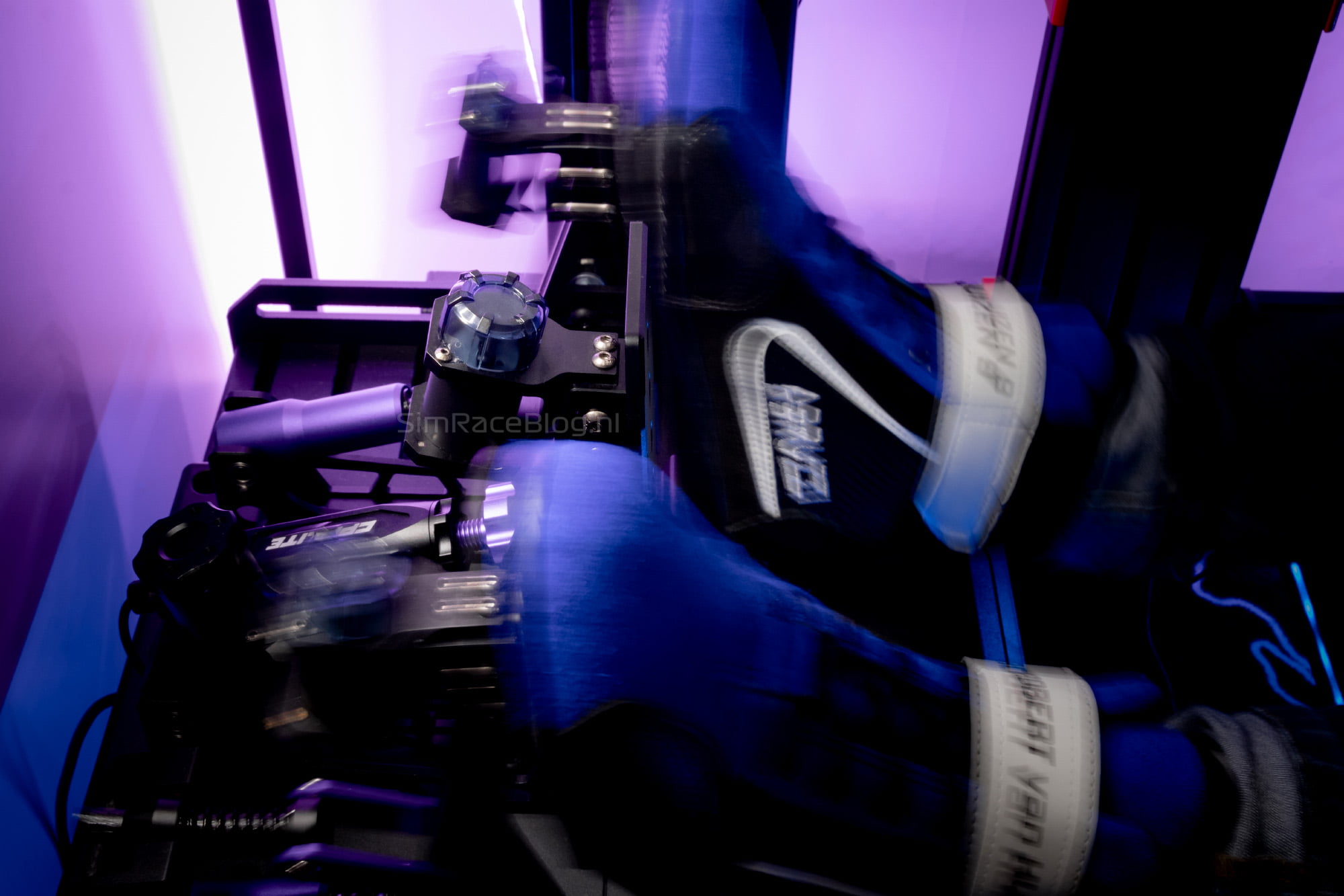 The initial impression we get from the Conspit CPP.Lite pedal set is simply familiar. On one hand, this is influenced by our experience with its predecessor, but even without considering that experience, the CPP.Lite pedal set gives us a familiar feeling. The pedals feel very robust, smooth, and accessible under our feet, making the process of getting a feel for them very brief. We don’t feel any play in the pedals, making them feel extremely solid. The flat footplates take some getting used to compared to the curved footplates of their predecessor, which we personally found very comfortable. However, the flat footplates are by no means a downgrade; they have a good size for us and feel comfortable under foot, although they are quite smooth. The extended footplate of the throttle pedal is a comfortable addition, ideal for applying the ‘heel-toe’ technique. The plastic heel plate surprises us; we secretly expected an uncomfortable experience, but that turns out to be an unfounded expectation. It’s not as comfortable as the aluminum heel plate of its predecessor, but it’s not uncomfortable. What is a bit disappointing is that the raised edge of the heel plate in the plastic version cannot be adjusted.