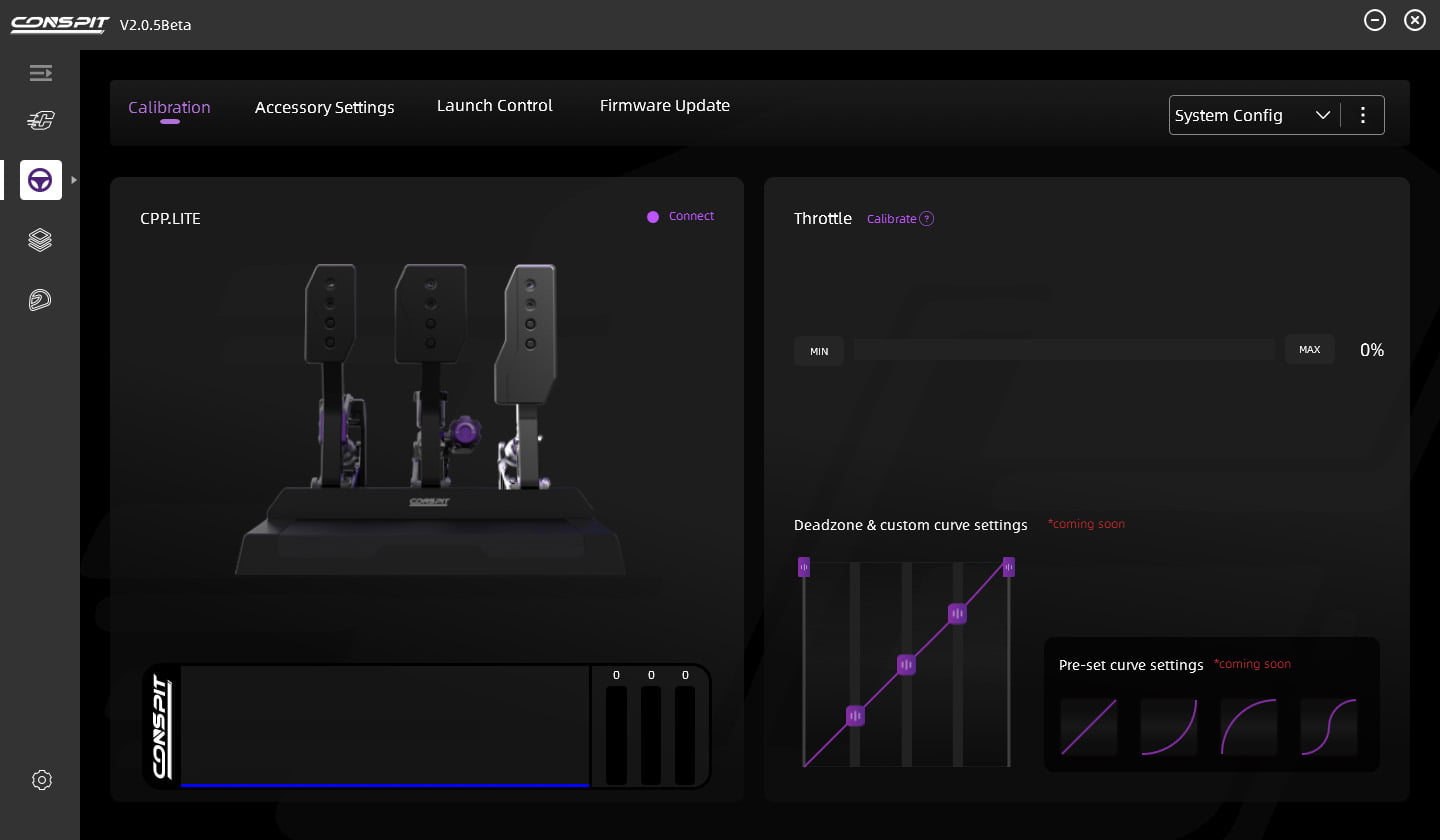 Since our review of the Conspit CPP Series pedal set, Conspit’s software package, named Conspit Link, has undergone a significant makeover. The package now has a more mature appearance with a beautiful graphical user interface consisting of dark gray tones and purple accents, mirroring the design elements of the CPP.Lite pedal set. The initial impression is that Conspit Link looks well-organized and user-friendly, designed with the end user in mind.