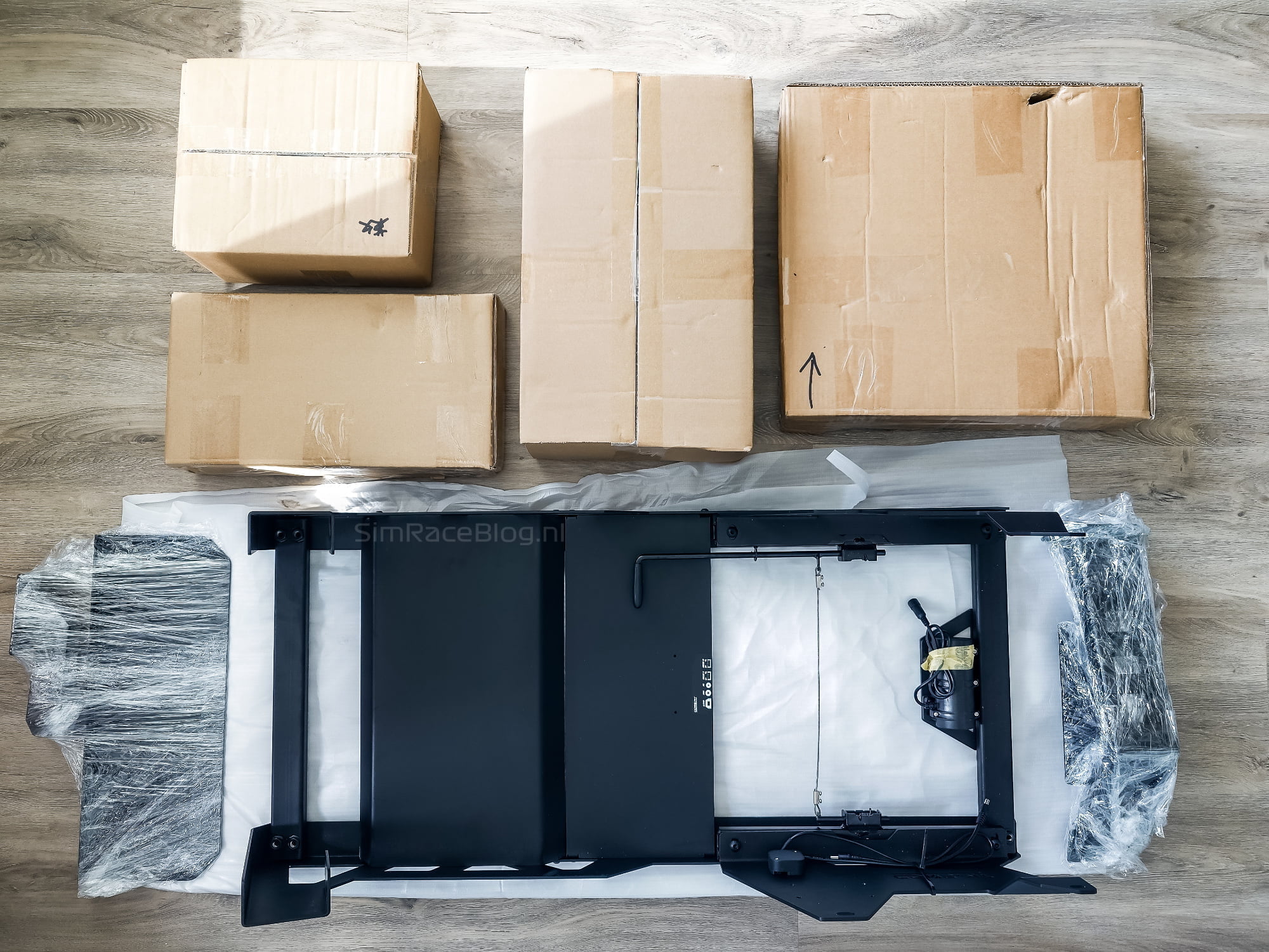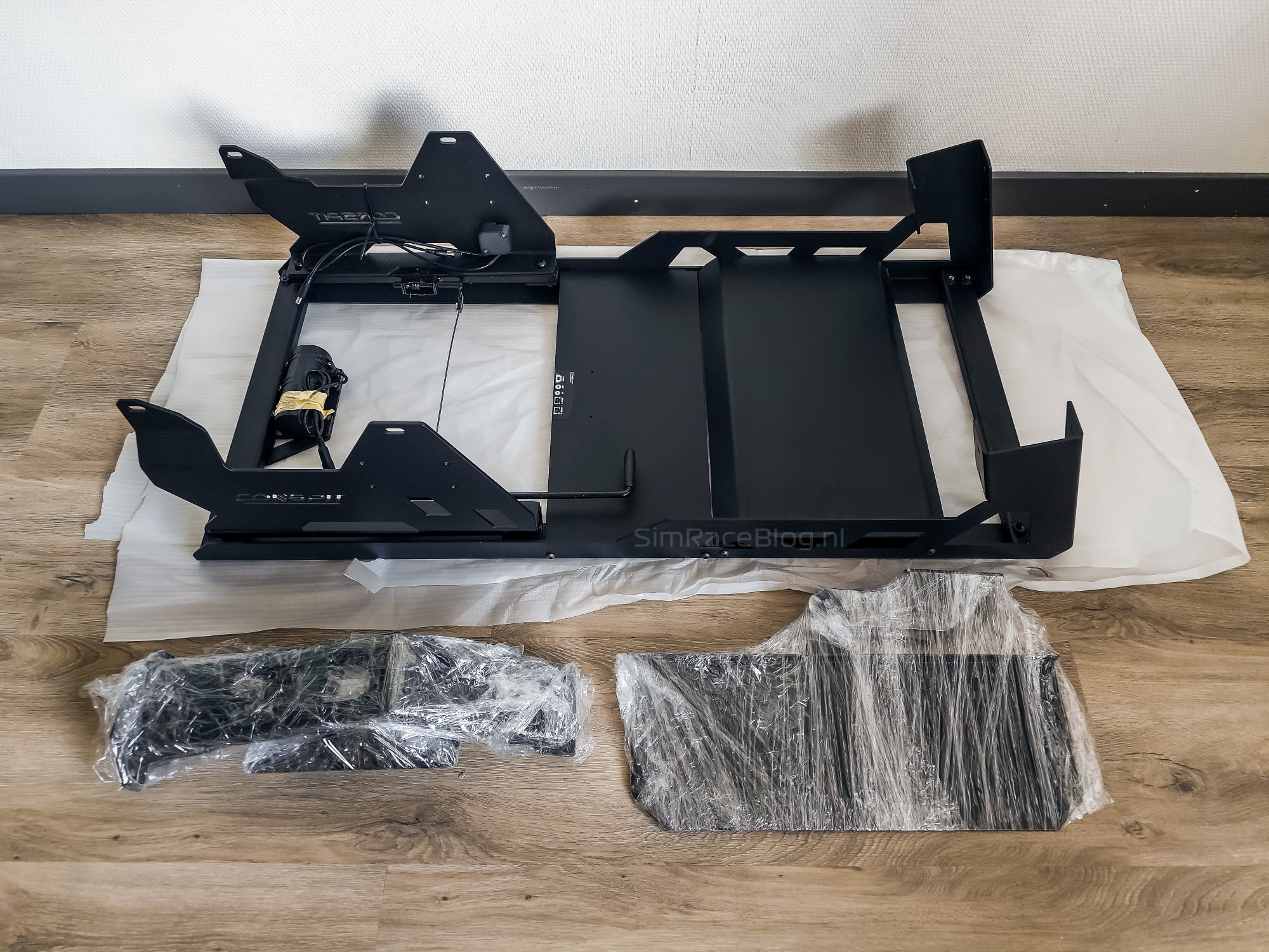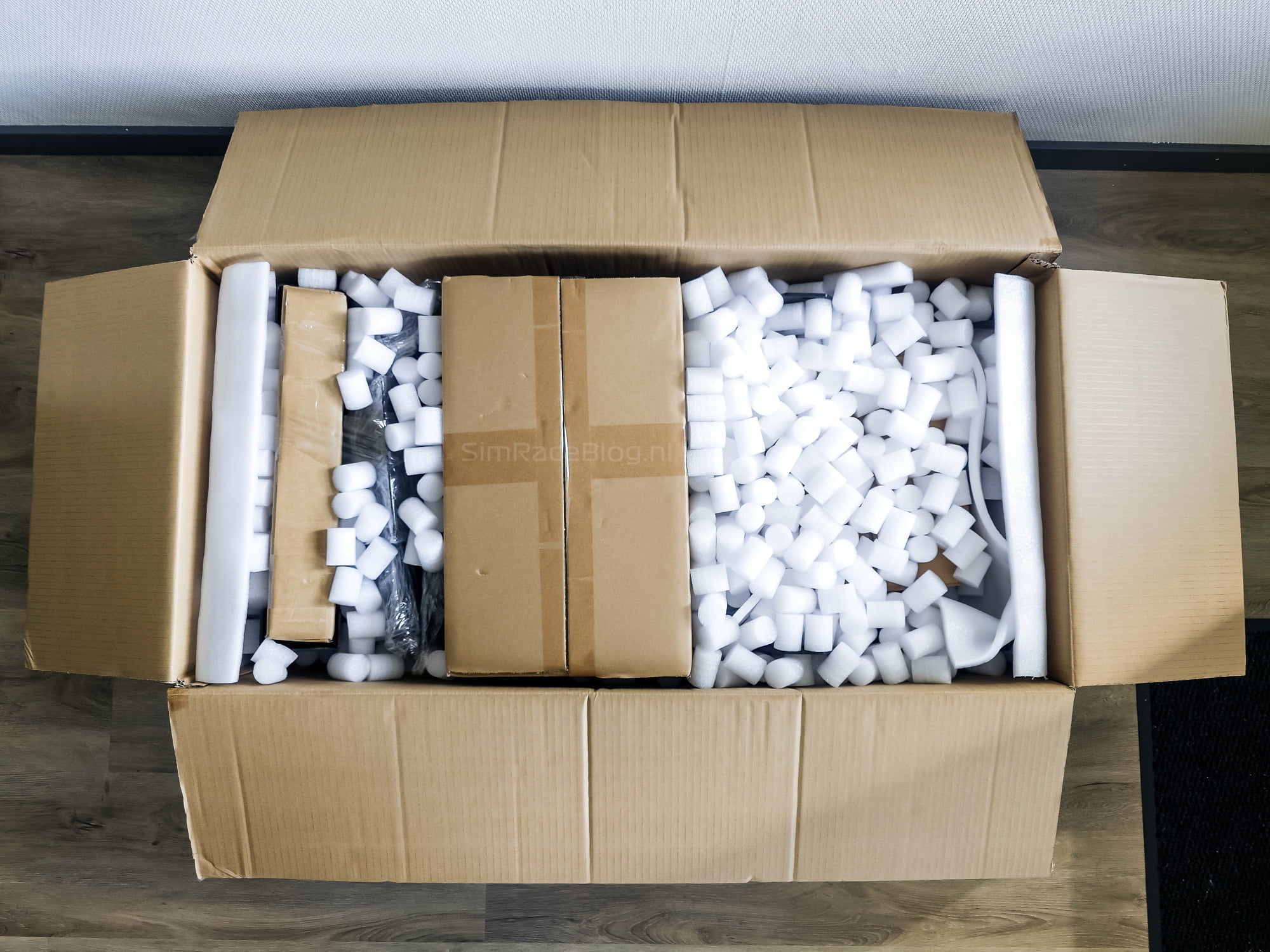 From the distribution center in Poland, the rig made its way to the Netherlands, arriving at our doorstep in two wooden crates weighing a hefty 77kg together. Fortunately, the contents of the crates are much lighter, but the rig still comes in a substantial box. In the first wooden crate, we found a large cardboard box with plastic corner protectors and sturdy cardboard L-profiles along the edges, ensuring maximum protection for the package. The second crate contained the seat, which was completely wrapped in a double layer of protective plastic film. It’s evident that Conspit goes to great lengths to ensure that your package is delivered to your door in excellent condition.