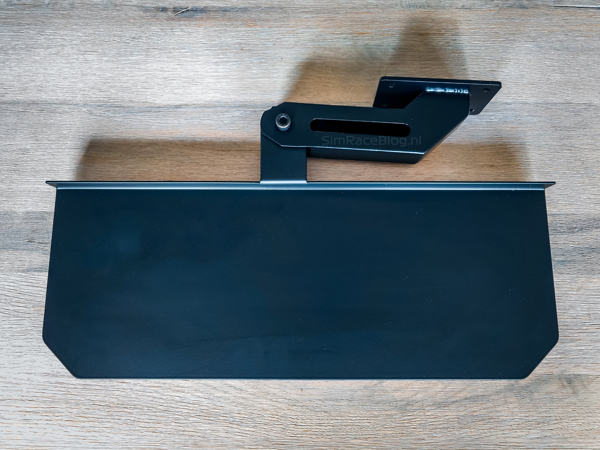 Regarding the assembly of the wheel deck, there isn’t much to say because it fits perfectly between the previously mounted brackets on the rig. By tightening the two bolts on each side, the wheel deck is secured to the rest of the frame, ready for attaching a wheelbase. As mentioned earlier in this review, the wheel deck is compatible only with wheelbases that can be attached from the bottom. Like the pedal deck, the wheel deck also features pre-drilled holes in a universal pattern. However, we had no issues with incompatible equipment; the holes in the bottom of our Fanatec CSL DD aligned perfectly with the holes in the wheel deck, securing it firmly within a minute.