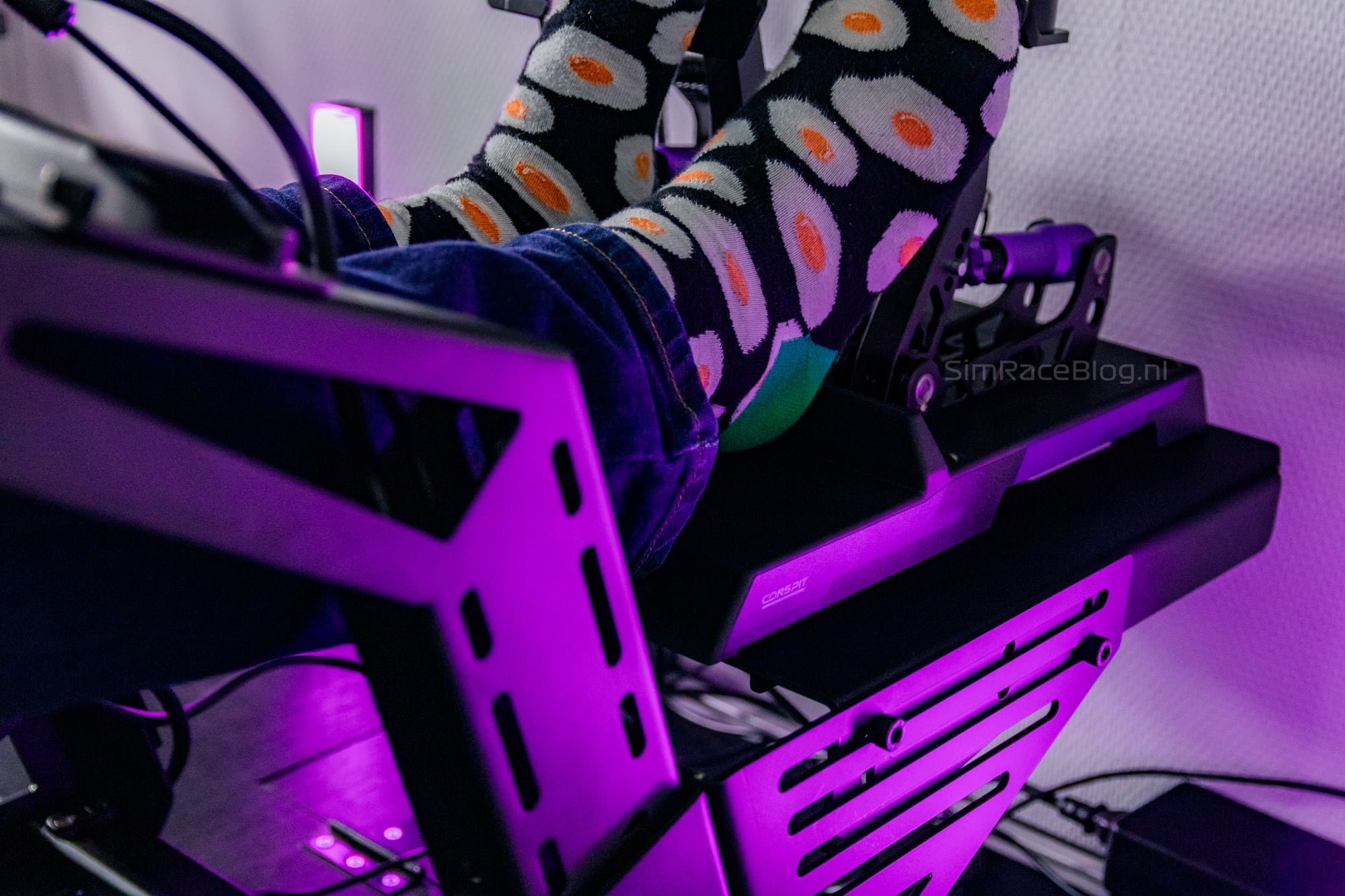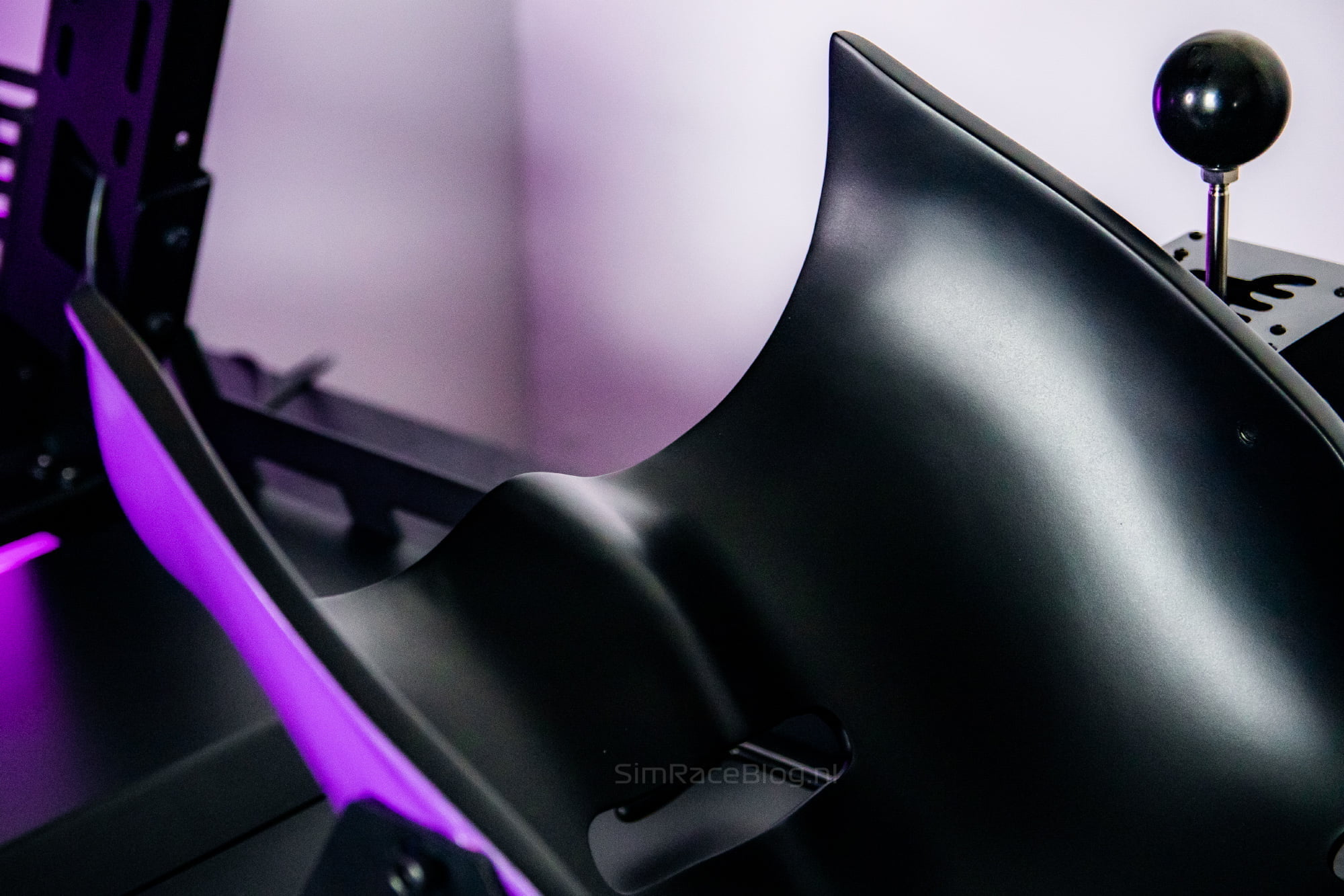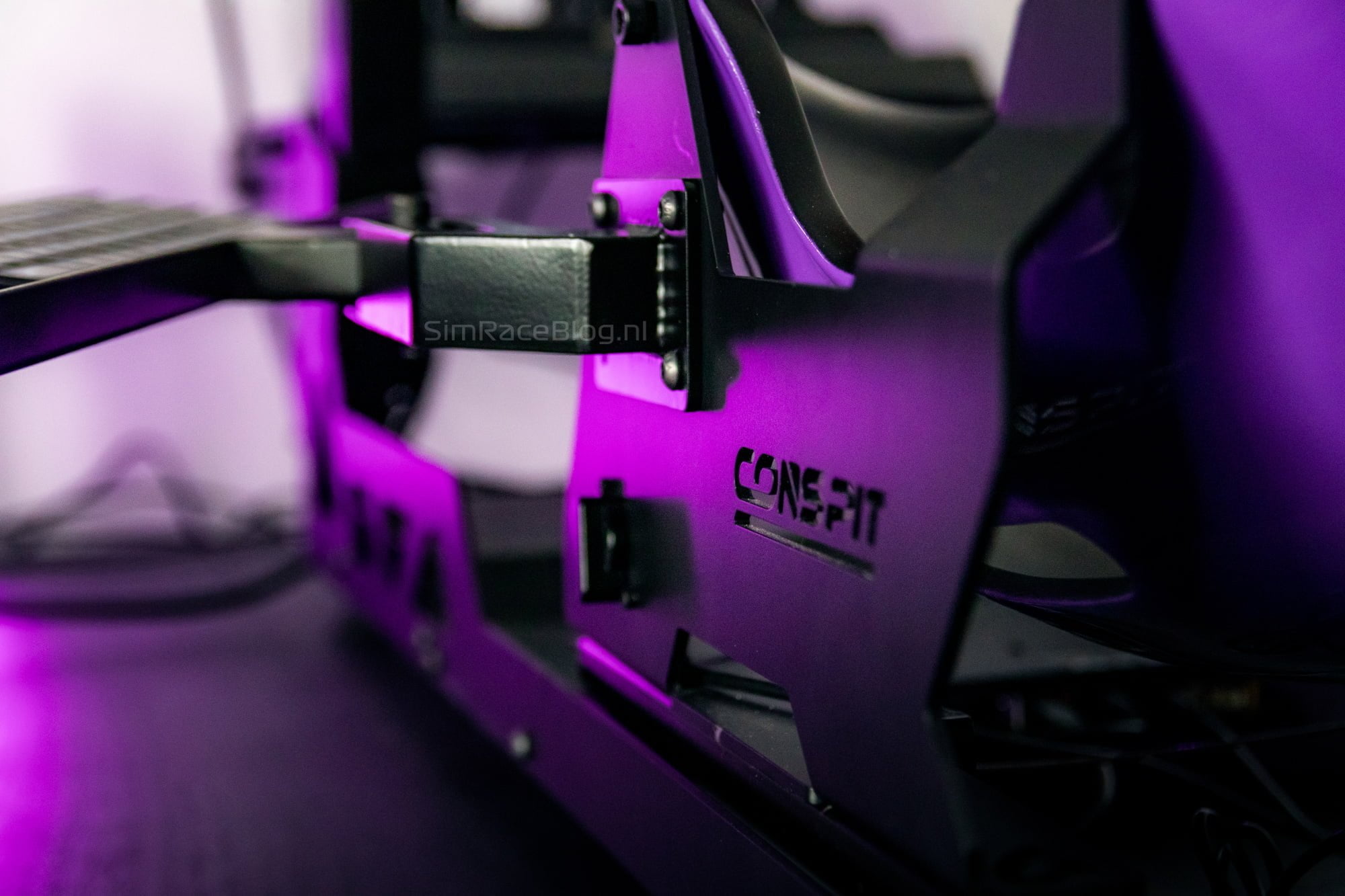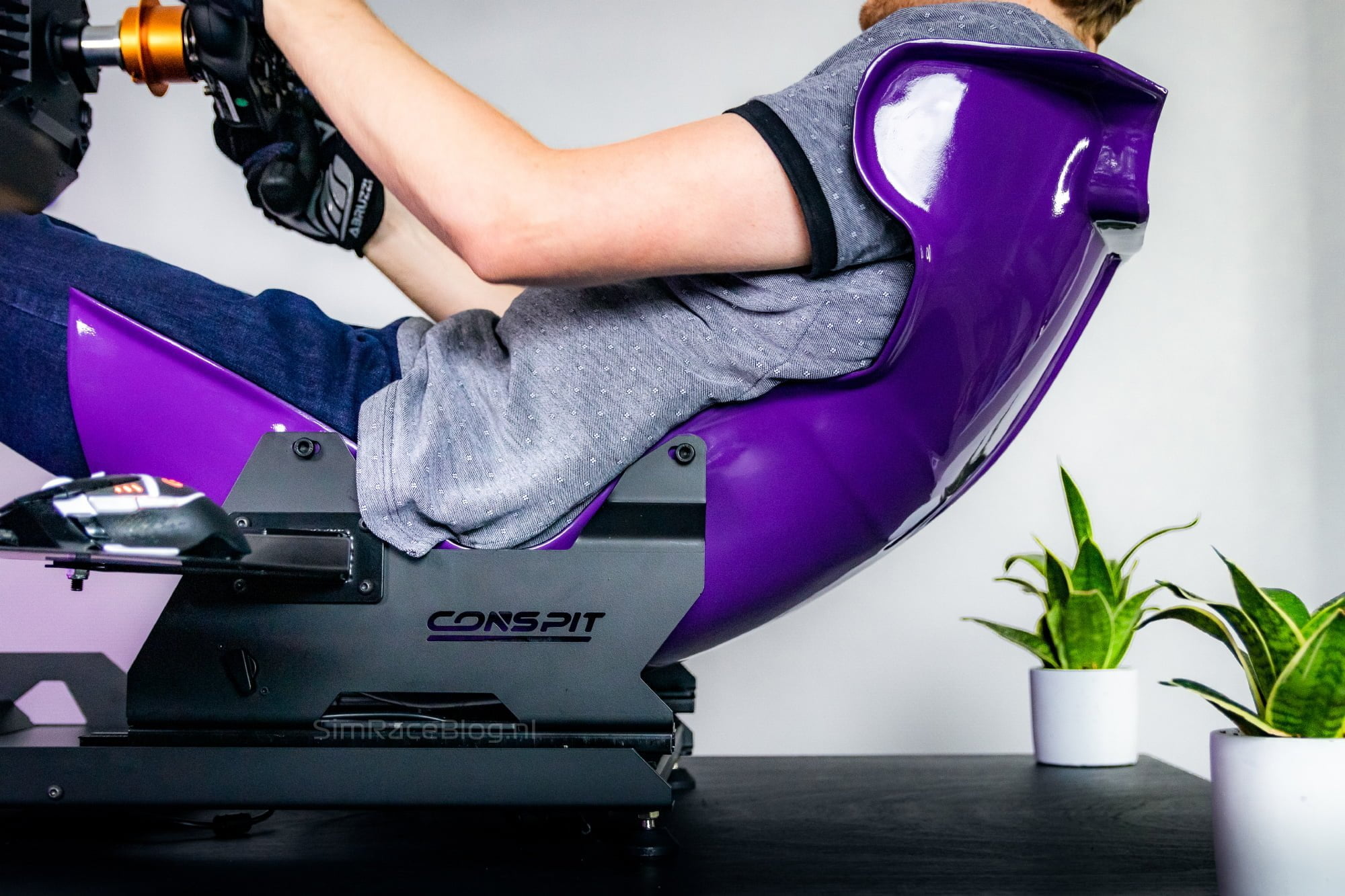 Despite the seat being made of hard plastic without any padding, we can confidently say it’s comfortable. Even after intense racing sessions lasting a few hours, the seat doesn’t become uncomfortable. When we climb out of our rig, we feel as fresh as when we got in, maybe with a few sweat marks as the only evidence of our racing endeavors. With a height of 1.85m and a weight of 85kg, we do feel like we’re nearing the maximum size for the seat. We have a good fit, but there isn’t much extra room. We notice that when sitting in the seat, our legs are somewhat pressed together, which can feel a bit uncomfortable at times. Fortunately, Conspit has plans to offer a slightly larger seat for the European market than the one currently available.