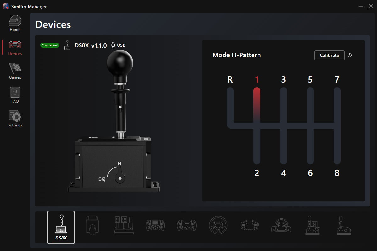 The Simagic DS-8X Shifter is a Dual Shifter, meaning it functions as both an H-pattern gear shifter with 8 gears (plus reverse) and a sequential shifter. The gear shifter is plug-and-play for use on PC via USB.