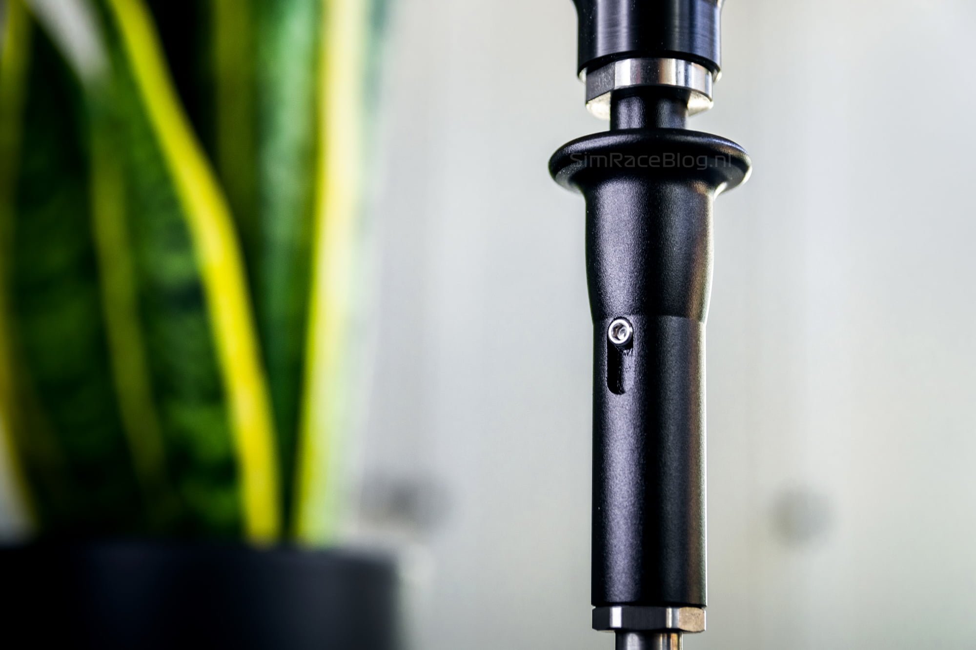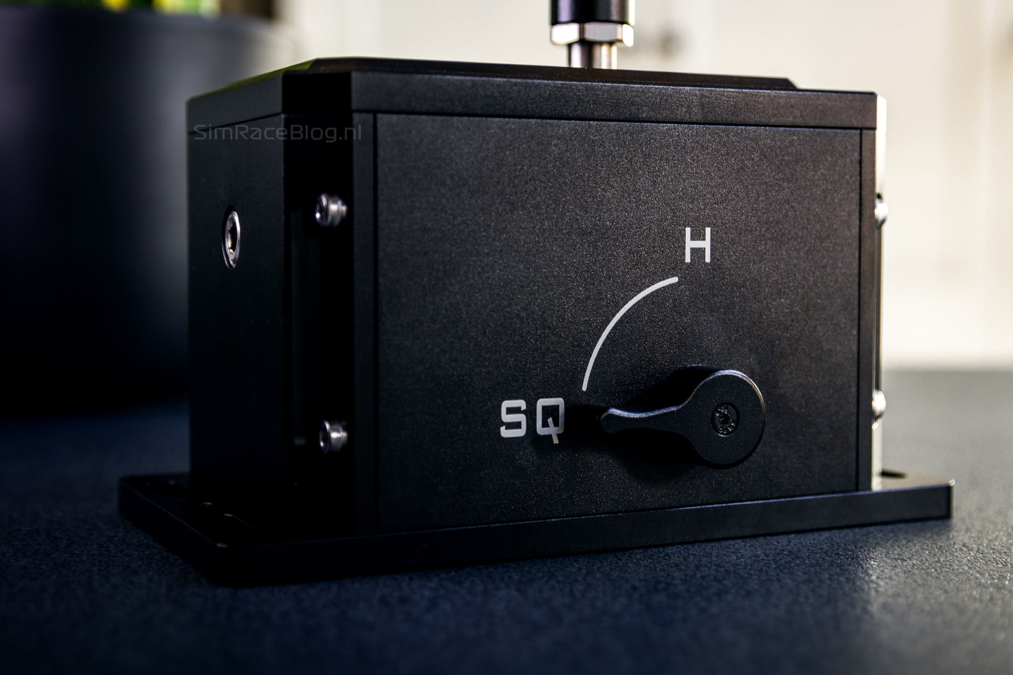 As mentioned, the DS-8X is a Dual Shifter, meaning it can function as an H-pattern gear shifter with 8 gears plus reverse, while it is also equipped with a sequential mode. The Simagic DS-8X features a rotating switch with two positions, allowing for an easy switch between the two modes. At the front of the housing, there is an opening that accommodates an Allen key. This key can be used to adjust the amount of resistance of the gear shifter according to preference, although it is not clear in advance if this applies to both modes. In the H-pattern mode, the reverse, seventh, and eighth gears are ‘locked,’ preventing accidental selection. To access these gears, you can pull up the ring beneath the gear knob with your fingers. The gear knob is replaceable with other models from Simagic or with universally available aftermarket gear knobs.