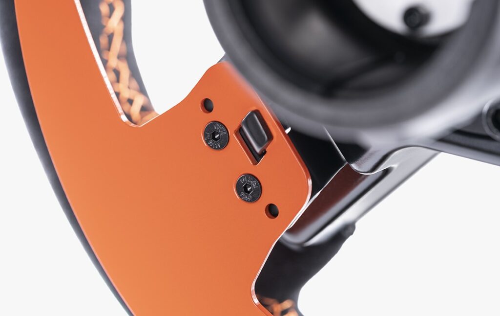 Spaken van geborsteld aluminium, echte Alcantara®-grip en oranje stiksels. De afneembare paddles zijn voorzien van Snapdome™ activering voor een bevredigende ‘klik’ reactie. De RevStripe™ en het geïntegreerde driecijferige LED-scherm tonen nuttige gegevens in compatibele games. Biedt ook toegang tot het afstemmenu, zodat u tijdens het spelen uw instellingen kunt aanpassen.