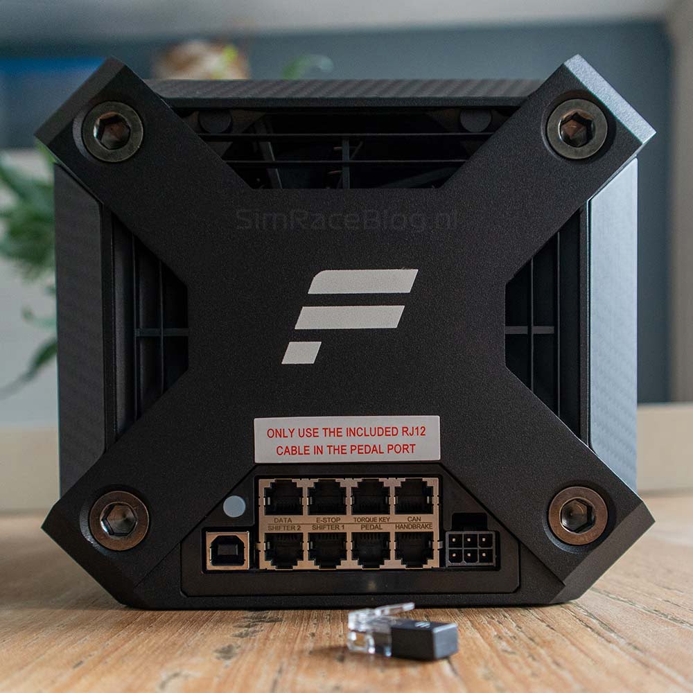 De wheelbase beschikt over een 2.7 inch OLED-scherm met een resolutie van 256 x 64 pixels waarmee je instellingen van je wheelbase en telemetriegegevens van je racegame kunt aflezen. Het aanpassen van deze instellingen kun je doen via het stuur, via de Fanatec Drivers en via de Fanalab software. Het weergeven van telemetriegegevens kan via het Intelligent Telemetry Mode (ITM) menu via de Fanalab software, daar gaan we later in deze review verder op in. Achterop vinden we aansluitingen voor de CAN, Data, Emergency Stop, Handbrake, Pedals, Shifter 1, Shifter 2 en voor de high-torque key. Ook vind je een klein rond knopje achterop waarmee je de wheelbase aan en uit kunt zetten en een aansluiting voor de voeding. De bijgeleverde Fanatec Killswitch maakt het mogelijk om de DD2 onmiddellijk uit te schakelen in geval van nood, tevens kun je hiermee de wheelbase aan- en uitzetten zodat je niet meer achterop hoeft te wurmen naar dat kleine ronde knopje.
