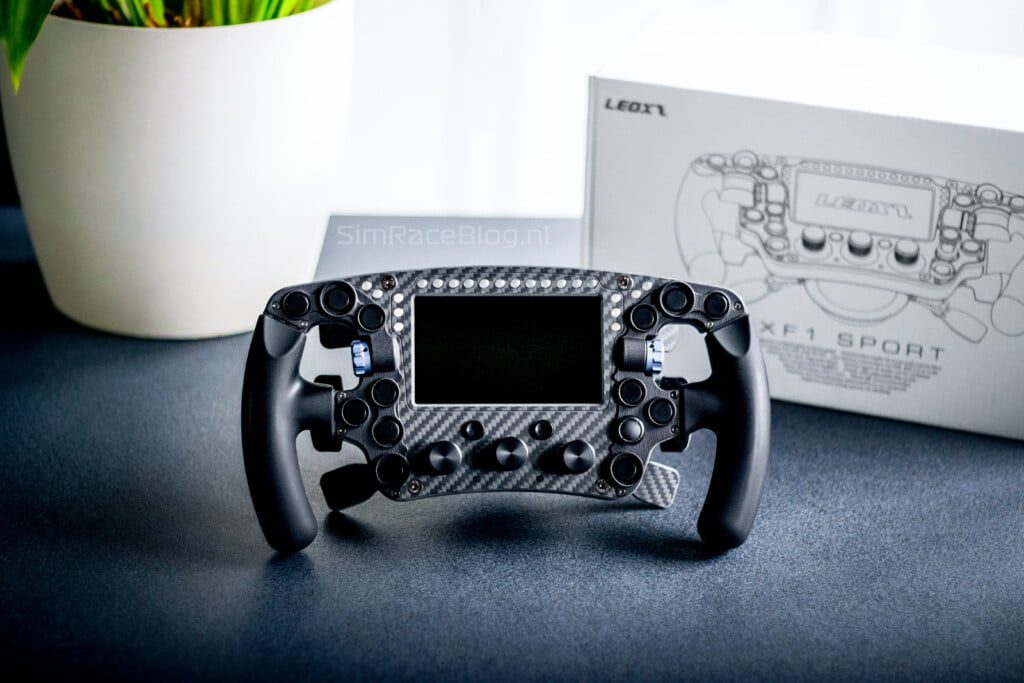 Het Leoxz XF1-Sport stuurwiel is een stuurwiel waar we de nodige tijd naar uit gekeken hebben, en dat blijkt niet onterecht. We vinden het 275mm brede stuurwiel allereerst erg mooi om te zien en de gebruikte materialen voelen verrassend goed en kwalitatief aan. Ergonomisch gezien ligt het stuurwiel voor ons met de rubberen grips erg prettig in de hand, al kunnen we ons voorstellen dat dit voor de coureurs met grotere handen wellicht niet zo hoeft te zijn. De schakelpaddles zitten vrij dicht op het stuur, maar de weerstand en feedback ervan is erg prettig en ook de double clutch en extra optionele paddles zijn erg prettig om te bedienen.