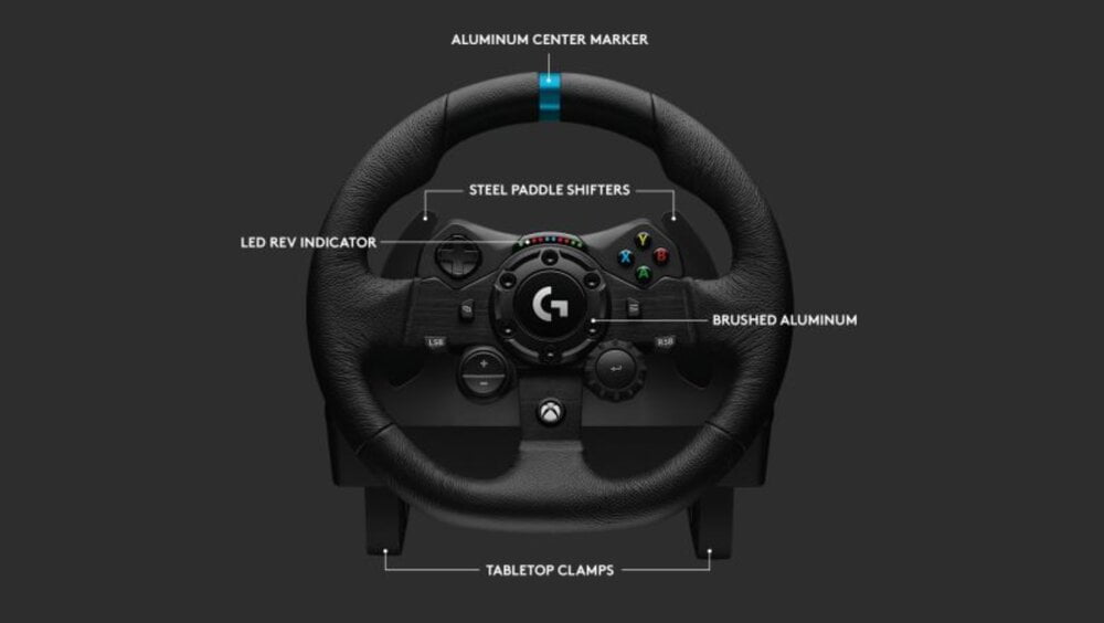 – Game die het 5racestuur met forcefeedback van Logitech ondersteunt. Ga naar logitechG.com/support/g923-xb1 voor een lijst met ondersteunde games