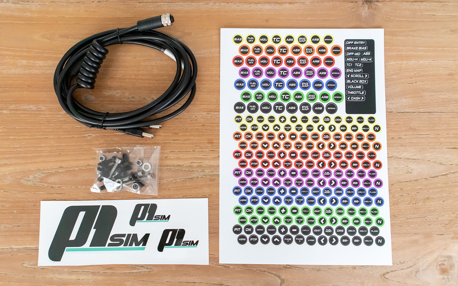 Omdat we gaan voor de ultieme Formule 1 experience gaan we dit stuurwiel gebruiken in Assetto Corsa met de mod van Race Sim Studio voor 2022 Formule 1 auto’s en in F1 2022. In beiden games zul je eerst de buttons en shifters moeten configureren en eventueel de double-clutches als je deze gebruikt. Na het configureren van de buttons en encoders plakken we er nog het juiste label op met de bijgeleverde stickerset. Je hebt voldoende mogelijkheden en genoeg variatie om er een kleurrijk geheel van te maken, hou je het liever sober dan zitten er ook zwart/wit mogelijkheden bij.