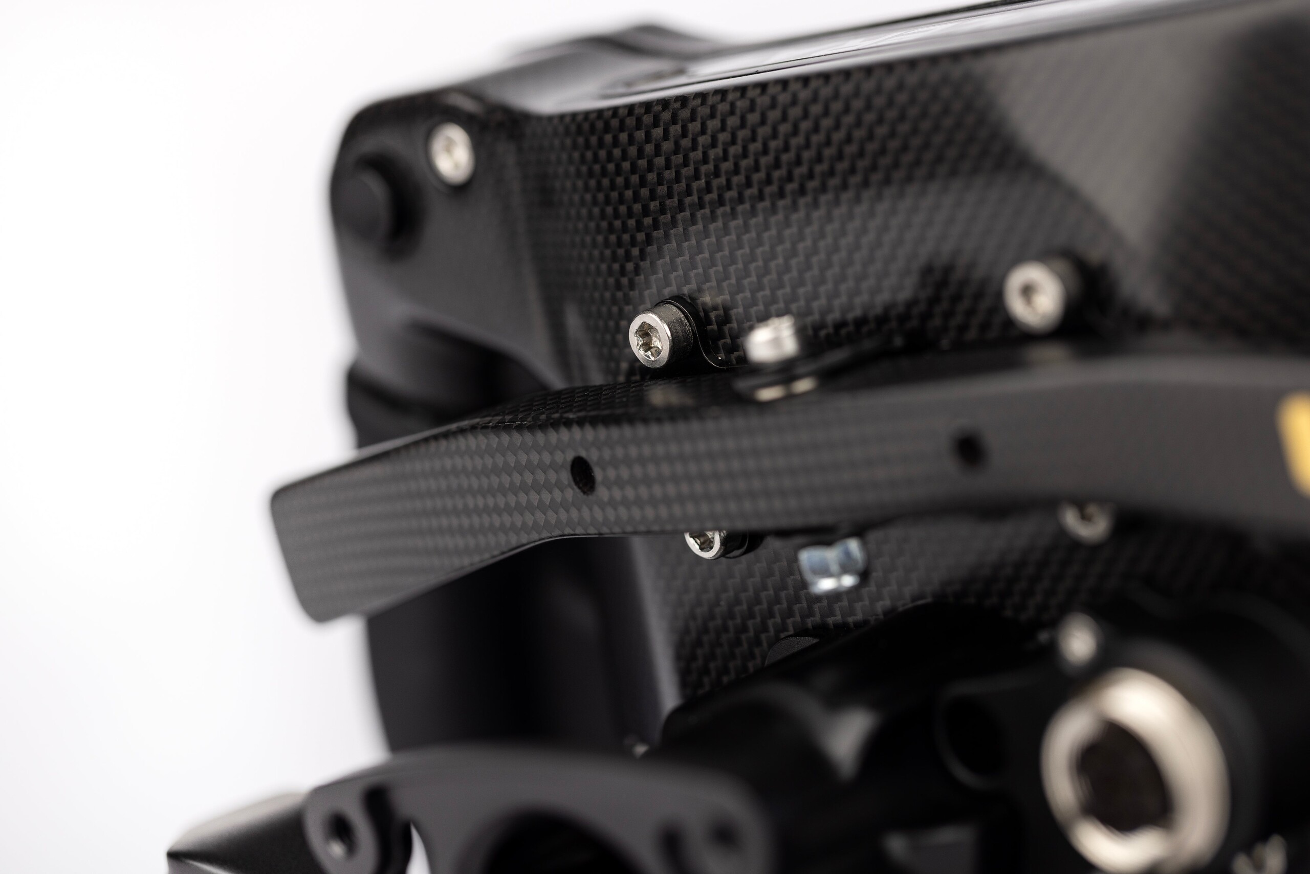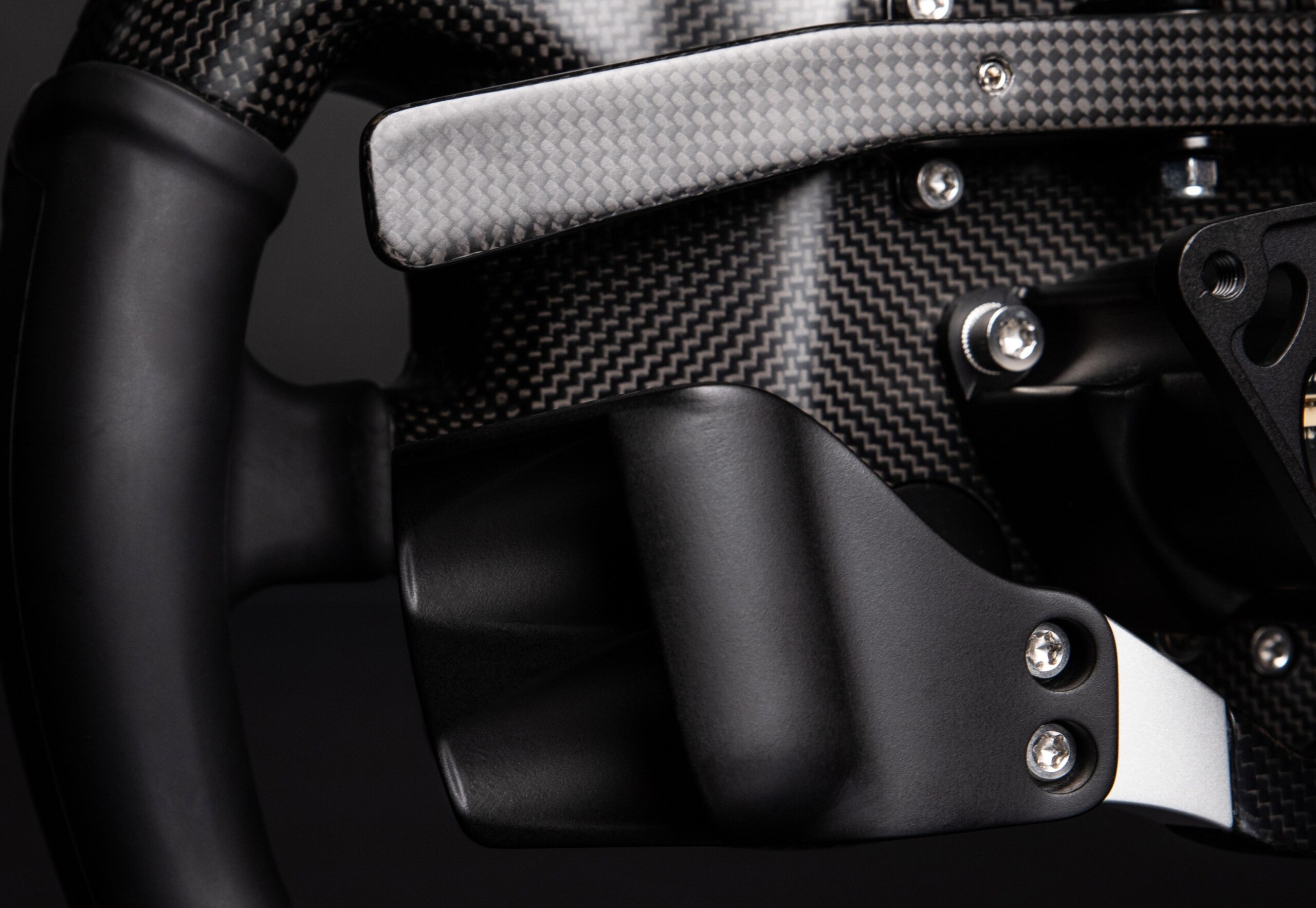 Het hoofdgedeelte bestaat uit een met de hand vervaardigde koolstofvezel behuizing, wat zorgt voor ongeëvenaarde stevigheid. Met een totaal gewicht van slechts 1240 gram, wordt de Force Feedback met precisie overgebracht van de wielbasis naar de handen van de bestuurder. De ergonomisch ontworpen rubberen siliconen handgrepen bieden maximale grip en comfort. Met een velgdiameter van 280 mm is het stuur zeer geschikt voor sim racing.
