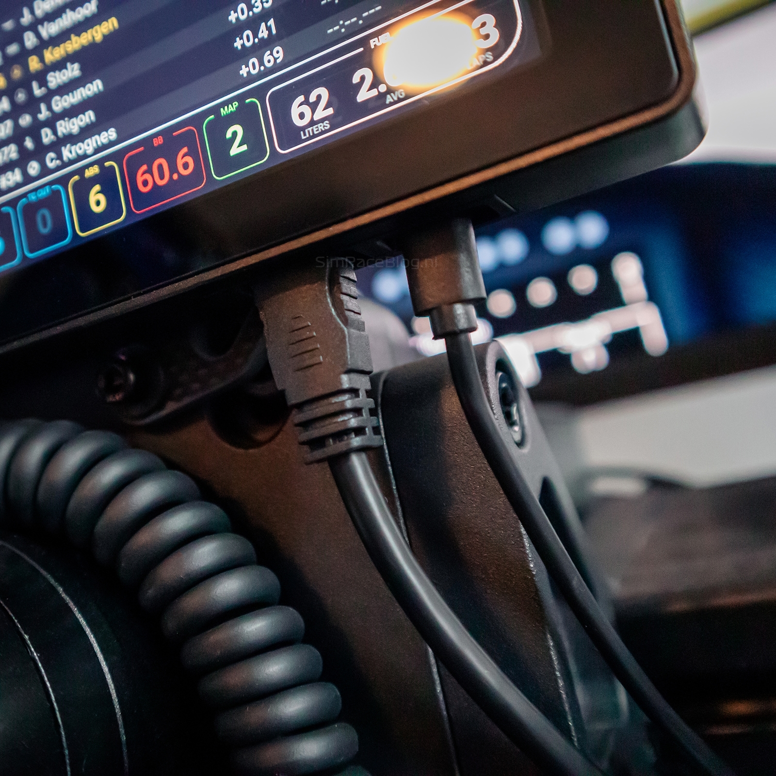 Wat vooral opvalt, is de schermkwaliteit: het beeld is scherp en heeft een prachtige kleurweergave. Met een maximale refresh rate van 60Hz reageert het scherm bovendien erg soepel en snel. Om deze refresh rate van 60Hz volledig te benutten in combinatie met telemetriegegevens, heb je wel een SimHub-licentie nodig. In de gratis versie stuurt SimHub de data namelijk met een maximale refresh rate van 10Hz naar je scherm. Ook is het erg handig dat het scherm via USB wordt gevoed; zodra we de pc afsluiten, schakelt het scherm automatisch uit.