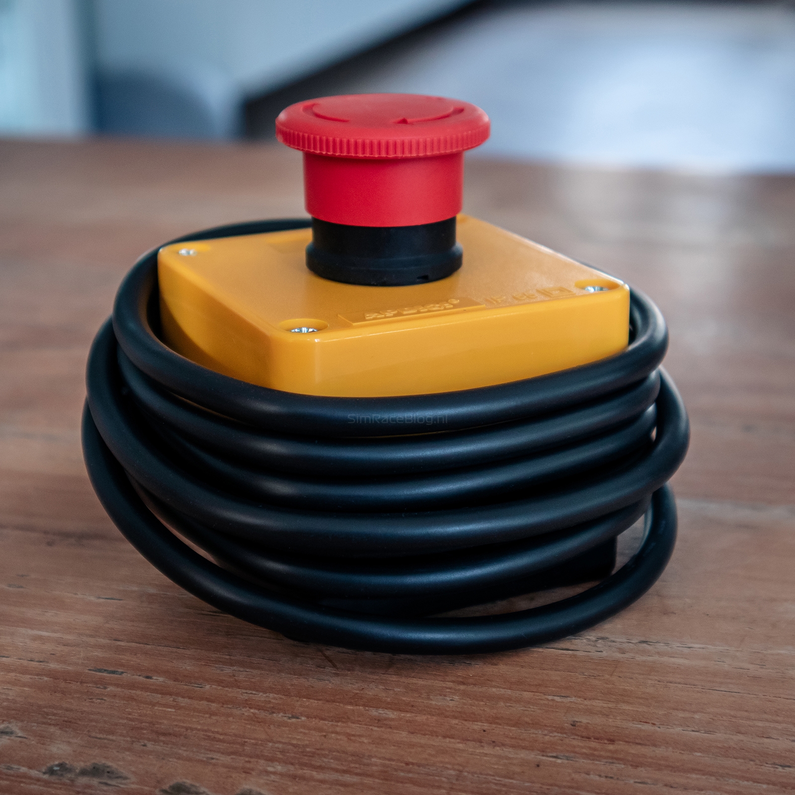 De bijgeleverde noodstop maakt het mogelijk om de forcefeedback onmiddellijk uit te schakelen in geval van nood of een crash. Wanneer we de noodstop indrukken, wordt direct de complete forcefeedback uitgeschakeld. Zodra we de knop weer losklikken, keert de forcefeedback na enkele tellen terug en kunnen we verder racen. Het is belangrijk op te merken dat deze noodstop geen mogelijkheid biedt om de wheelbase zelf aan of uit te zetten. Als je dit wel via de noodstop wilt doen, kun je upgraden naar de ‘Simucube Premium Torque off button‘. Voor ons voldoet de aan/uit-knop die achterop de wheelbase is geplaatst ook prima.